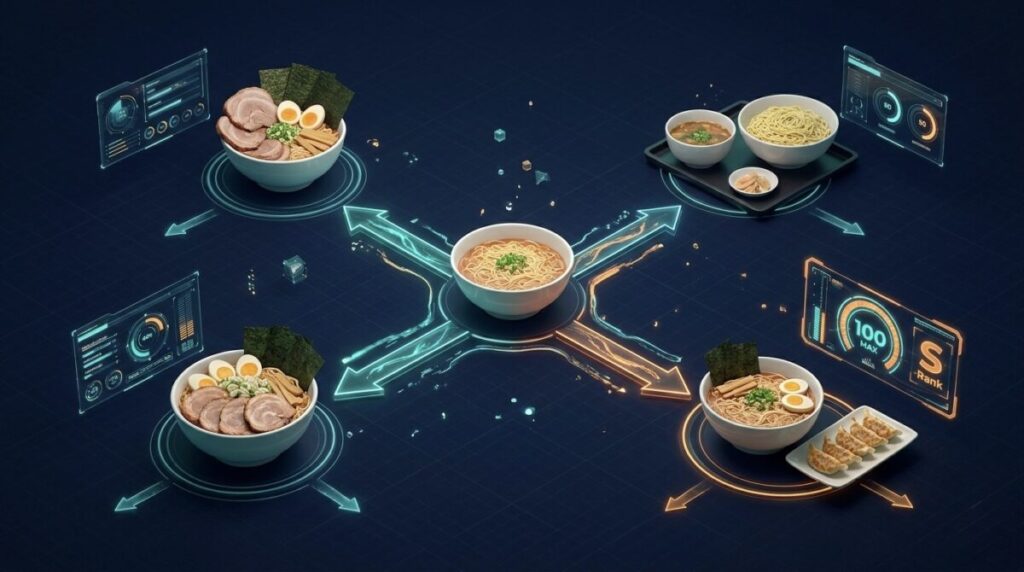 最初は「醤油か、味噌か」という味を決めるだけでも十分です。でも慣れてくれば、味を決めたあとに「どんなトッピングを乗せようか」「付け合わせは餃子か、チャーハンか」と、全体のバランスを想像できるようになりますよね。